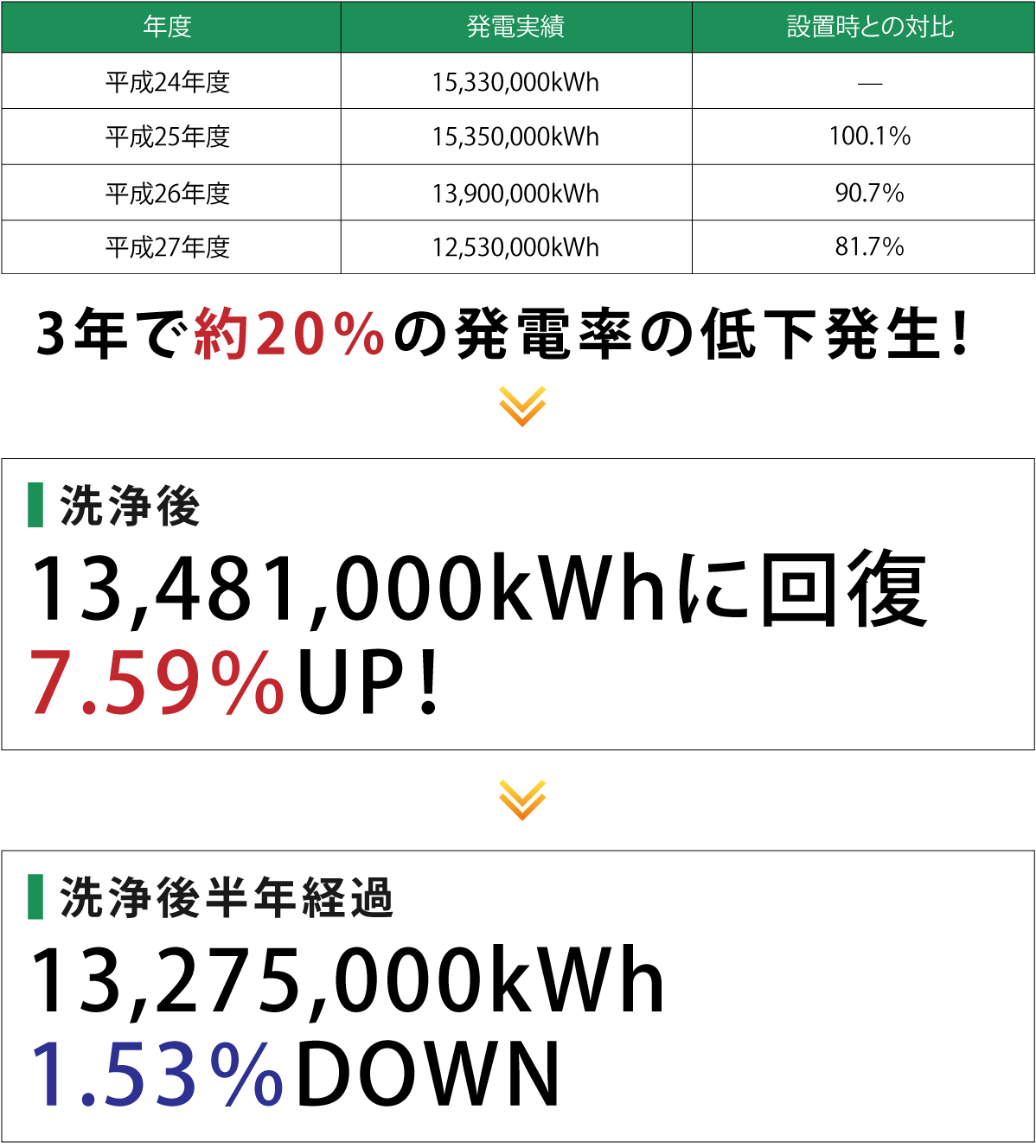 発電率低下と洗浄効果Power generation rate reduction and cleaning effect