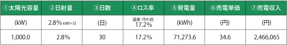 ❺ 発電量・・・①~④により算出 ①×②×③×(1-④)