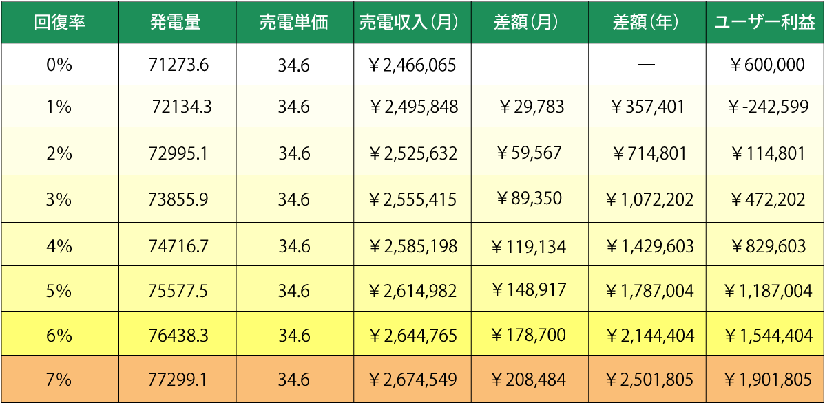 ❹ ロス率・・・温度・汚れ・配線回路ロスを加味した数値 汚れによるロスは7% 温度・回線 他ロスは10.2%にて算出